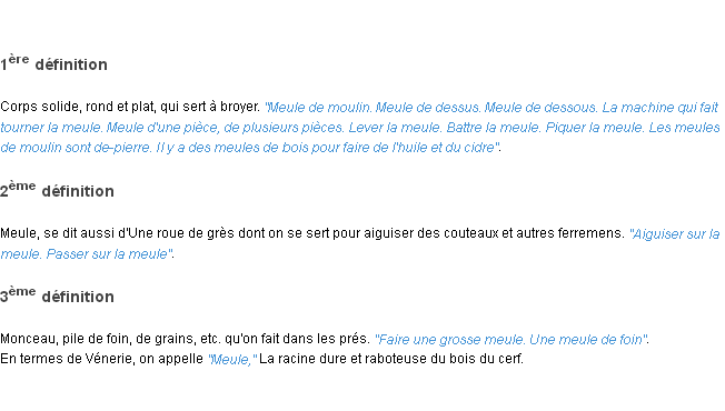 Ancienne signification issue du dico de l’Académie Française, parue en 1798.Merci à Théo et Gaetane pour la numérisation du mot meule.