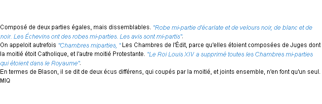 Ancienne signification éditée en 1835 pour le terme « mi-parti » par l’Académie Française.