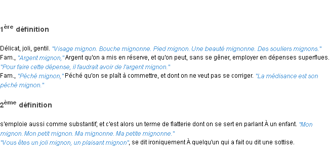 Définition du mot « mignon » par l’Académie Française (édition de 1932).