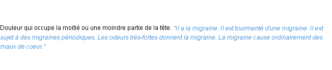 Définition du mot « migraine » par l’Académie Française (édition de 1986).