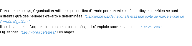 Définition de l’Académie Française (édition de 1932) pour le mot « milice ».