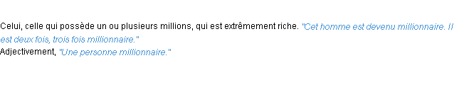 Définition académique pour le terme « millionnaire » (parue en 1986).