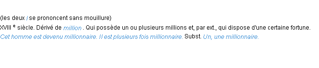 Ancienne définition de « millionnaire » de source académique (Académie Française, parution de 1798).Merci à Pascal et Thierry pour la numérisation du mot millionnaire.