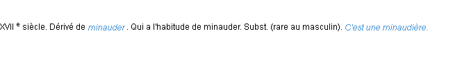 Définition académique pour le terme « minaudier » (parue en 1986).