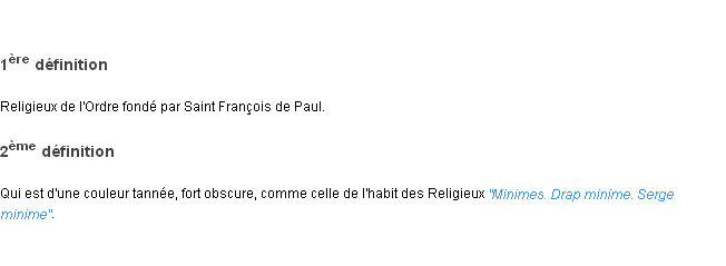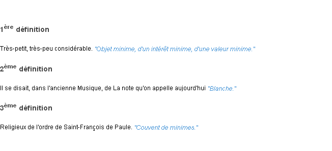 Ancienne définition développée dans dictionnaire académique, 1798.Merci à Célestine et Margot pour la numérisation du mot minime.
