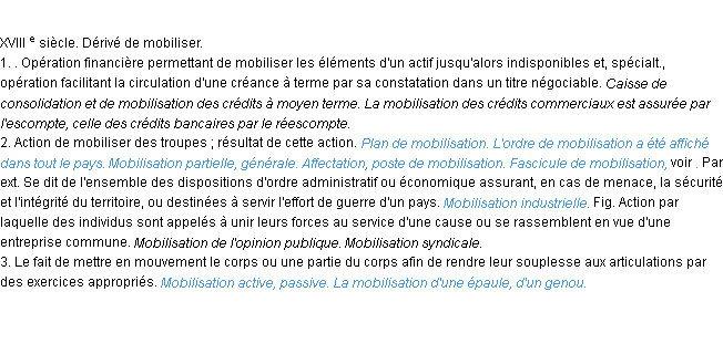 Signification du terme « mobilisation », parution de 1932, dictionnaire académique Français.