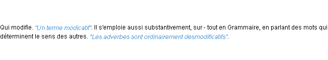 Définition « modificatif » du dictionnaire académique Français, parution de l’année 1986.