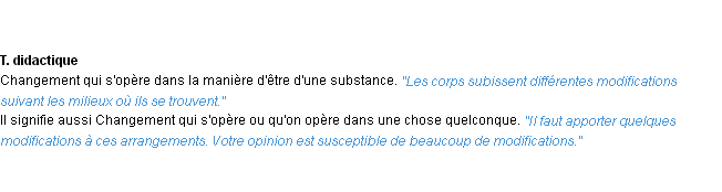 Ancienne définition académique pour le terme « modification » (parue en 1835).