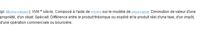 Définition académique pour le terme « moins-value » (parue en 1986).