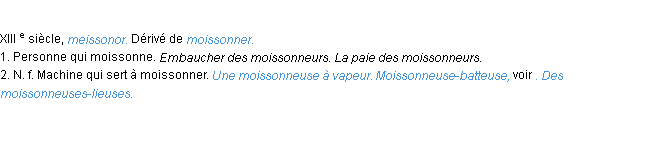 Définition du mot « moissonneur » par l’Académie Française (édition de 1986).