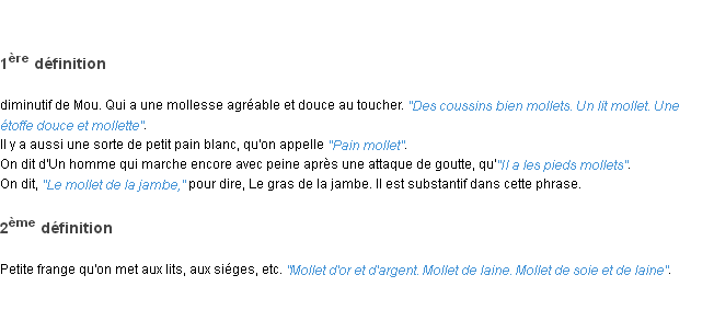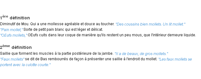 Ancienne définition du mot « mollet » par l’Académie Française (édition de 1798).