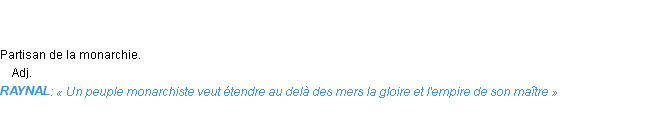 Signification éditée en 1876 pour le terme « monarchiste » par Emile Littré.Merci à Christophe et Yves pour la numérisation du mot monarchiste.