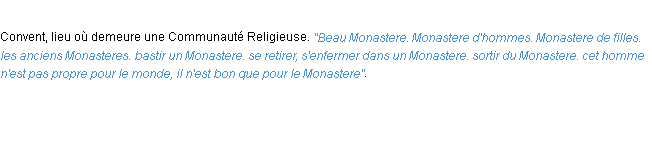 Ancienne définition académique pour le terme « monastere » (parue en 1694).Merci à Axelle et Sandrine pour la numérisation du mot monastere.