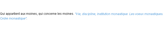 Définition de « monastique » de source académique (Académie Française, parution de 1986).