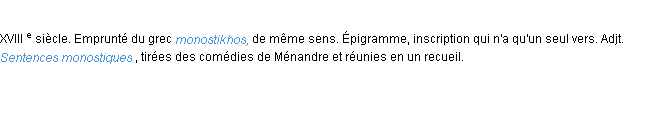 Définition développée dans dictionnaire d’Emile Littré (ancienne édition de 1876).Merci à Renaud et Sylvestre pour la numérisation du mot monostique.