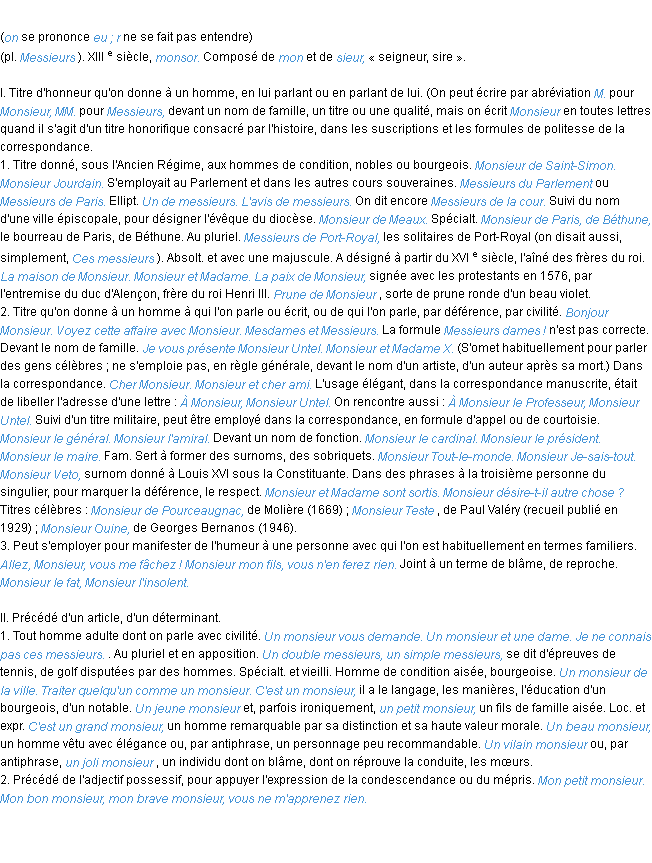 Ancienne signification éditée en 1835 pour le terme « monsieur » par l’Académie Française.