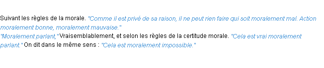 Signification éditée en 1986 pour le terme « moralement » par l’Académie Française.