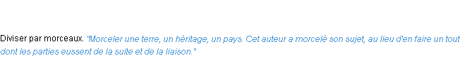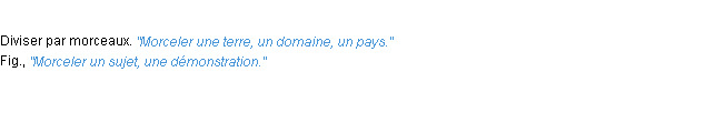 Définition de « morceler » de source académique (Académie Française, parution de 1986).