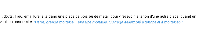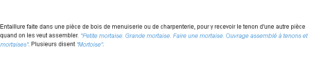 Définition « mortaise » du dictionnaire académique Français, parution de l’année 1986.