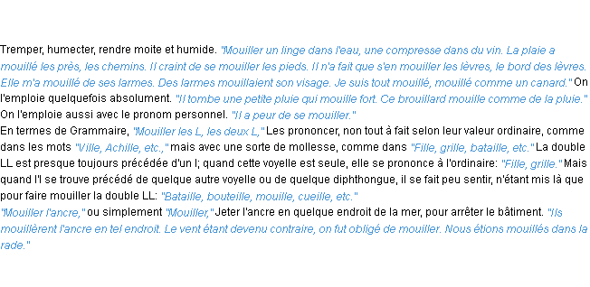 Ancienne définition « mouiller » du dictionnaire académique Français, parution de l’année 1835.