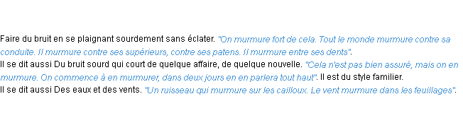 Signification du terme « murmurer », parution de 1932, dictionnaire académique Français.
