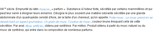 Définition du mot « musc » par l’Académie Française (édition de 1986).