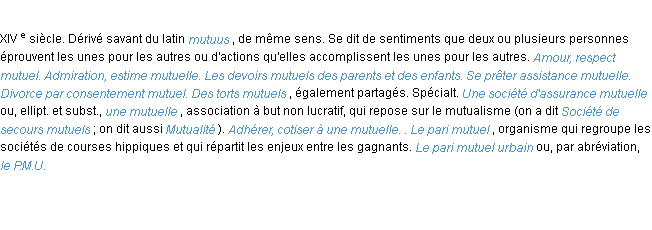 Signification du terme « mutuel », parution de 1932, dictionnaire académique Français.