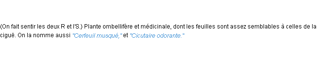 Ancienne signification du terme « myrrhis », parution de 1835, dictionnaire académique Français.