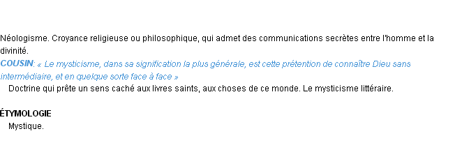 Définition du mot « mysticisme » par l’équipe de la-definition.fr (édition de 2011).