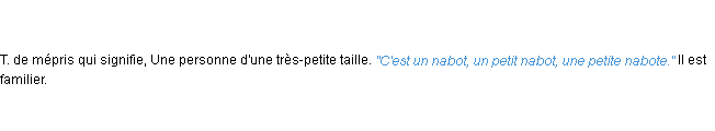 Ancienne définition de « nabot » de source académique (Académie Française, parution de 1798).Merci à Gaetane et Frédéric pour la numérisation du mot nabot.