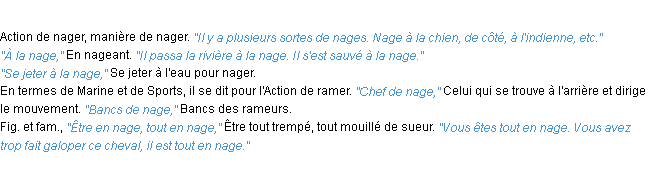 Définition du mot « nage » par l’Académie Française (édition de 1986).