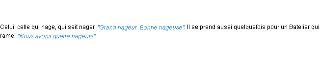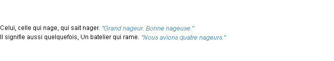 Définition du mot « nageur » par l’Académie Française (édition de 1932).