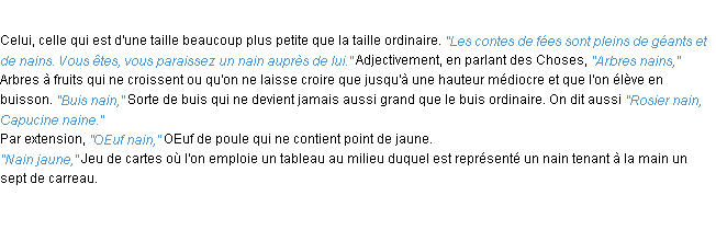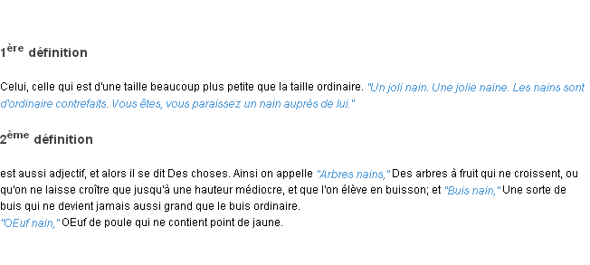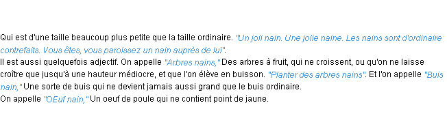 Définition du mot « nain » par l’Académie Française (édition de 1932).