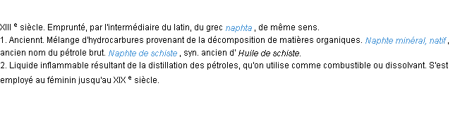 Définition de « naphte » de source académique (Académie Française, parution de 1986).