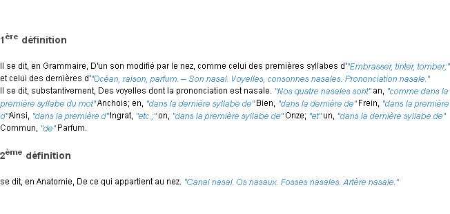 Ancienne définition de l’Académie Française (édition de 1835) pour le mot « nasal ».