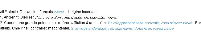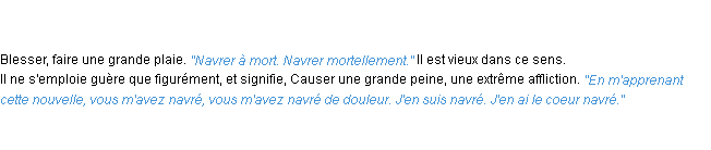 Ancienne définition développée dans dictionnaire académique, 1798.Merci à Gaetane et Papillion pour la numérisation du mot navrer.