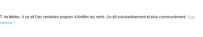 Ancienne signification éditée en 1835 pour le terme « nervin » par l’Académie Française.