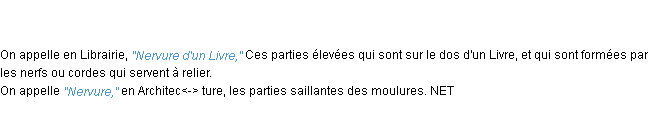 Ancienne signification développée en 1798 par l’académie Française (ACAD - 1798).Merci à Désirée et éloise pour la numérisation du mot nervure.