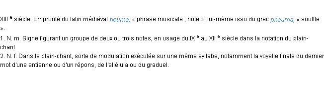 Définition de « neume » de source académique (Académie Française, parution de 1986).