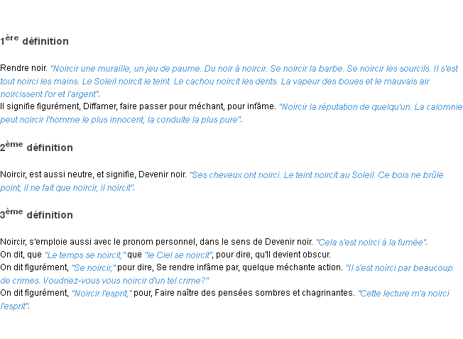 Ancienne définition « noircir » du dictionnaire académique Français, parution de l’année 1835.