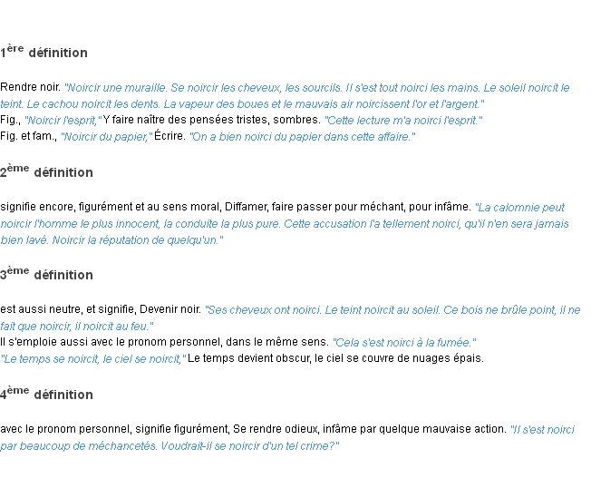 Définition du mot « noircir » par l’Académie Française (édition de 1932).