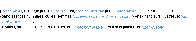 Définition du mot « nombrable » par Jean-François Féraud (édition de 1788).Merci à Maximilien et Cerise pour la numérisation du mot nombrable.