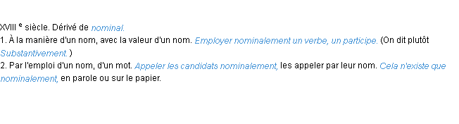 Signification du terme « nominalement », parution de 1876 (dictionnaire le Littré).