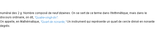 Ancienne définition « nonante » du dictionnaire académique Français, parution de l’année 1835.