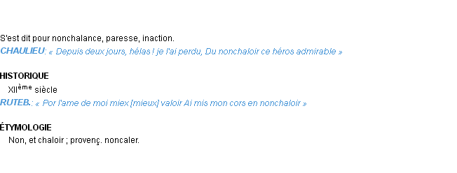 Définition développée dans dictionnaire d’Emile Littré (ancienne édition de 1876).Merci à Véronique et Tatienne pour la numérisation du mot nonchaloir.