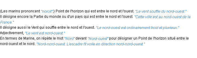 Ancienne définition développée dans dictionnaire académique, 1798.Merci à édouard et Josée pour la numérisation du mot nord-ouest.
