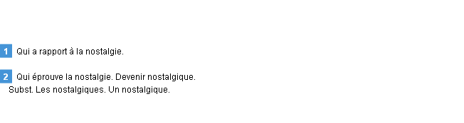 Définition de l’équipe de la-definition.fr (édition de 2009) pour le mot « nostalgique ».
