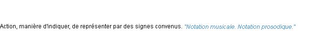 Signification parue en 2009 (source la-definition.fr).Merci à Léa et Corin pour la numérisation du mot notation.