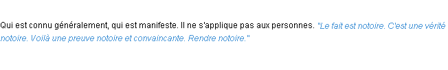 Signification du terme « notoire », parution de 1986, dictionnaire académique Français.