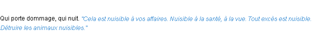 Ancienne signification parue en 1798 dans dictionnaire de l’Académie Française.Merci à Angèle et Cyrille pour la numérisation du mot nuisible.